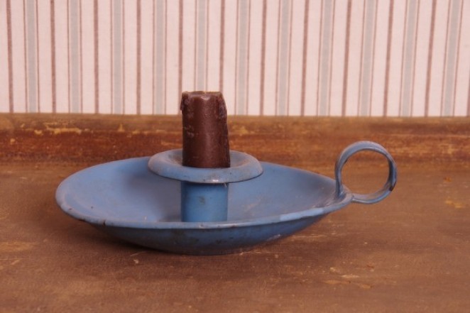 A stunning blue enamel candle holder.