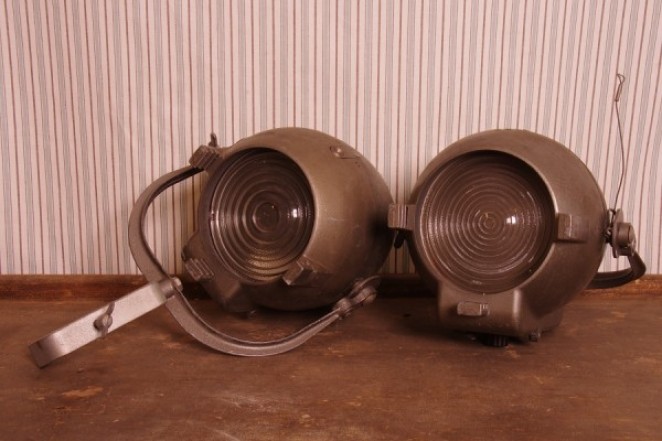 Two metal 1950’s theatre lights from London. The lights are intact and in excellent condition but need rewiring. Would look fantastic in a cafe, lighting for a shop front display or in your home.