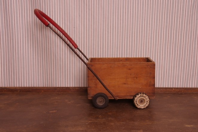 This one is such a cutie. The ” Hodgin’s” 1960’s “make – do” childs box pram with non matching wheels and gas copper pipe handle. Made on a farm in the Kyabram region of Victoria, this would make a great ornament in any childs room.