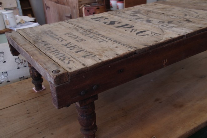 This is a rarity – a depression child’s bed base – would look amazing as a coffee table. C 1930 the base is constructed of tea and coconut packing crates. Dimensions 320 H 1180 W 550 D.
