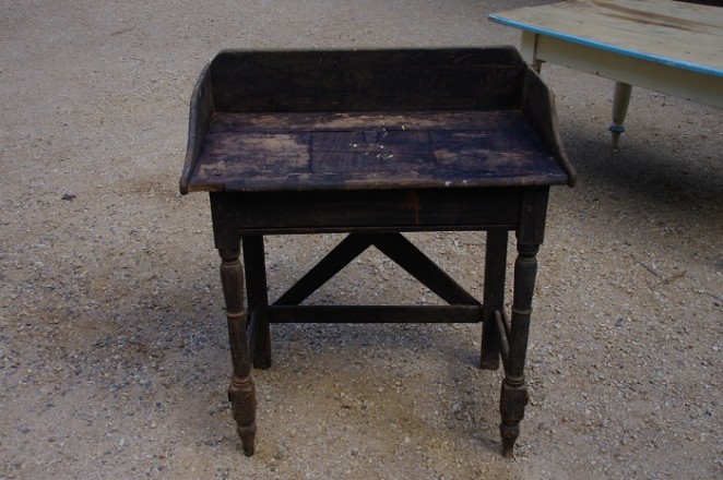 Stunning original clerks desk in black charcoal colouring. Contains a cut out desk lid for storage. Origin Southern Mallee of South Australia