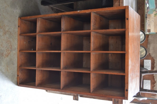 Lovely solid hardwood 16 hole – pigeon hole cupboard. Dimensions 650mm H X 1050mm W X 390mm D. Price sold