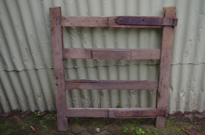 Beautiful old farm gate from historic sheep station in the Western District of Victoria – perfect for the entrance to your kitchen or herb garden. C 1880’s Dimensions 82cm W x 92cm H.