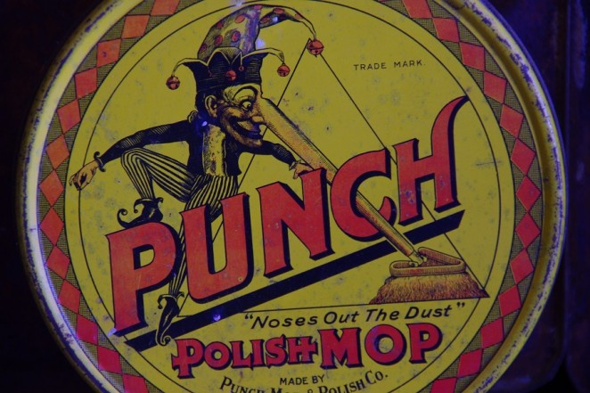 A highly colourful and decorative Punch Polish mop tin.