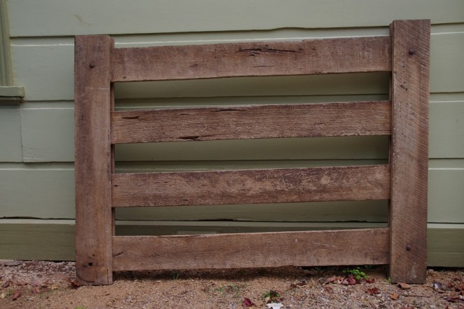 Stunning solid sheep farm gate from the Skipton, Western District of Victoria. In amazing condition and would make an ideal gate to a garden entrance. C 1870. Dimensions 1450 W 1070 H .