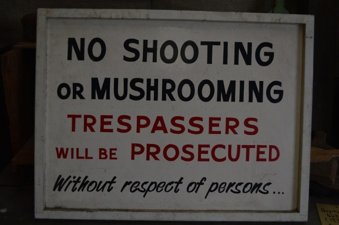 Wonderful vintage sign “no shooting or mushrooming”. C 1950. Dimensions 64.5 cm x 49 cm. Price $160.00