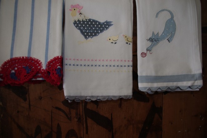 Beautifully made country house cotton or linen tea towels. Price $13.95 ea